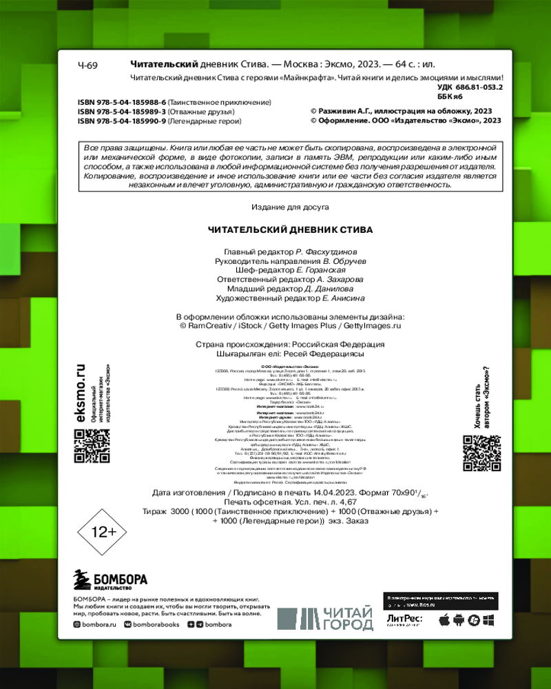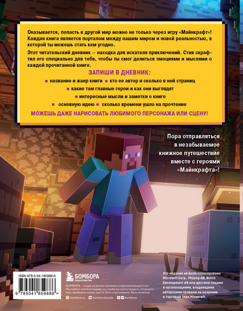 Дневник читательский Стива «Таинственное приключение»В данный момент этот товар отсутствует в продаже. Возможно, у нас найдется аналогичный или похожий товар здесь. Серия: Майнкрафт. Дневник Стива Оказывается, попасть в другой мир можно не только через игру «Майнкрафт»! Каждая книга является порталом между нашим миром и новой реальностью, в которой ты можешь стать кем угодно. |