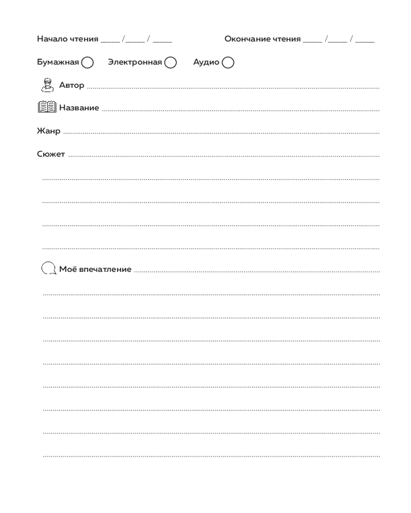 💳 Оплатить за товар можно при получении 🇰🇿 Есть бесплатная доставка по Казахстану от 1 дня 🎁 Копите бонусы с каждой покупки Серия: Читательские дневники Если вы любите книги, много читаете и хотите навсегда сохранить впечатления о каждой книге, то читательский дневник — это палочка-выручалочка для вас! |