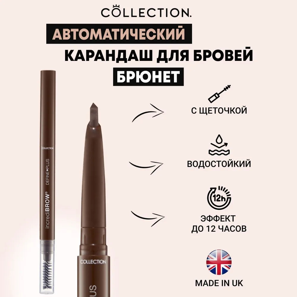 Collection Карандаш для бровей с щёточкой «Incredibrow Define Plus», оттенок Brunette