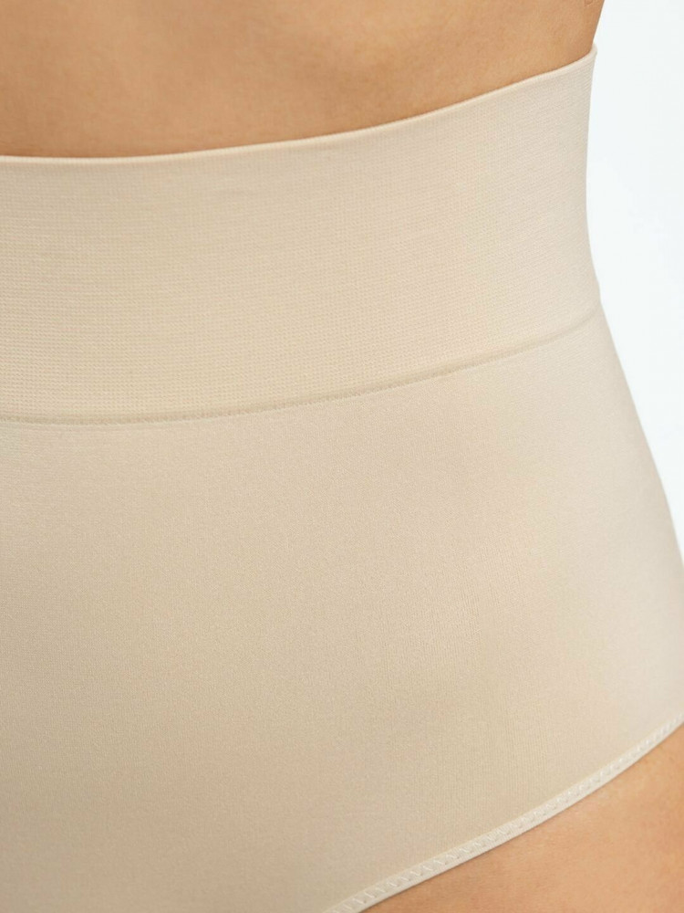 Комплект понравился. Трусики плотные, утягивающие. Из-за двойной резинки в поясе не скатываются.