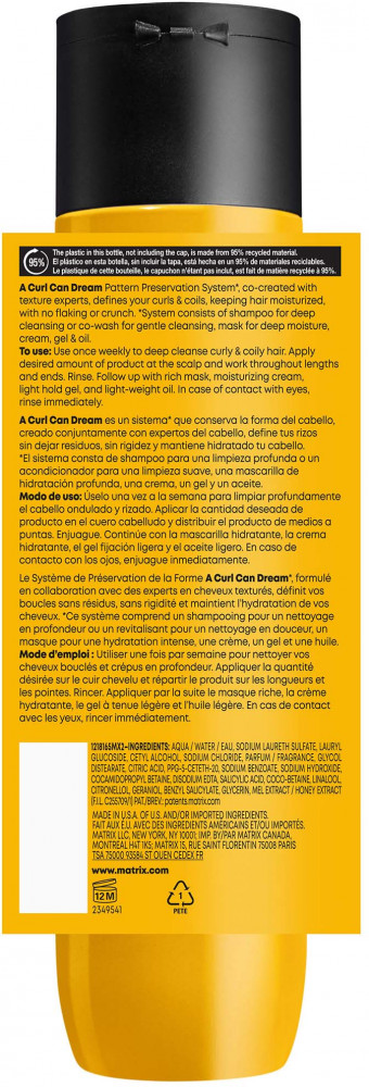 Matrix Шампунь для кудрявых и вьющихся волосВ данный момент этот товар отсутствует в продаже. Возможно, у нас найдется аналогичный или похожий товар здесь. Серия: A Curl Can Dream Линия A Curl Can Dream создана совместно с парикмахерами специально для кудрявых и вьющихся волос. |