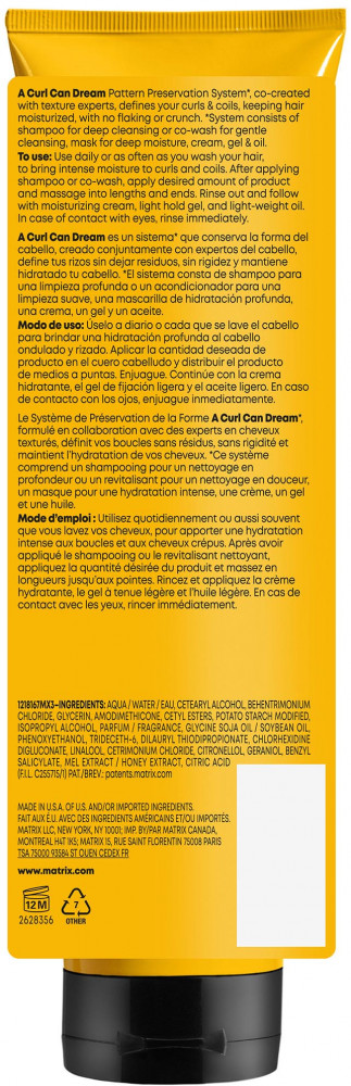 Matrix Маска для кудрявых и вьющихся волосВ данный момент этот товар отсутствует в продаже. Возможно, у нас найдется аналогичный или похожий товар здесь. Серия: A Curl Can Dream Профессиональная маска Matrix A Curl Can Dream для вьющихся и кудрявых волос интенсивно увлажняет и питает пористые волосы, помогает сформировать красивый и упругий завиток. Аромат раскрывается нотами розы, пиона, морской соли, ландыша и жасмина. Формула не содержит минеральные масла. |