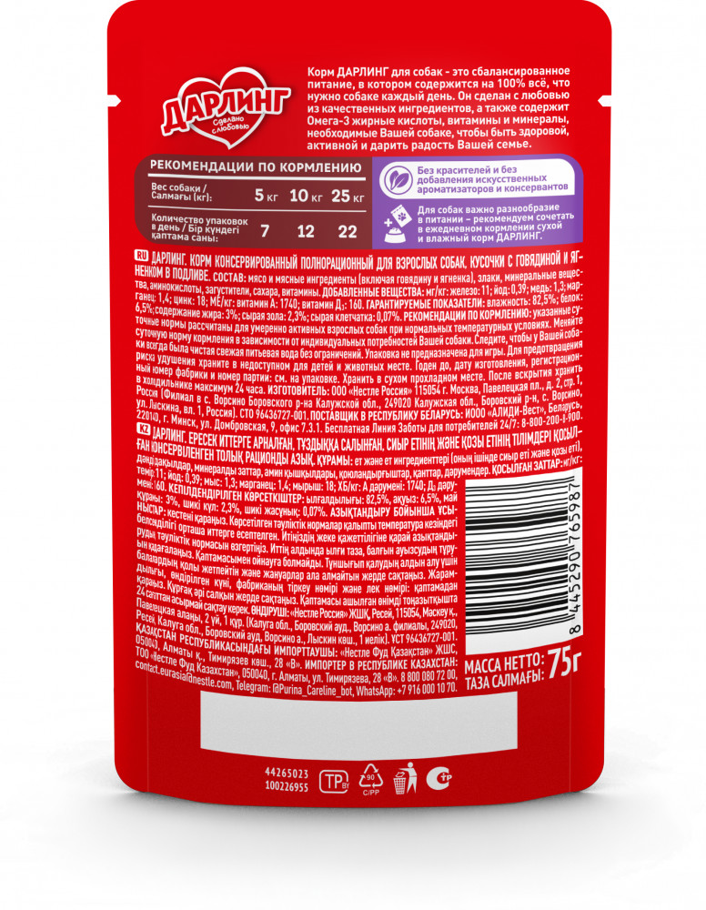 Отзывы «Корм для собак «Говядина с ягненком в подливе»»