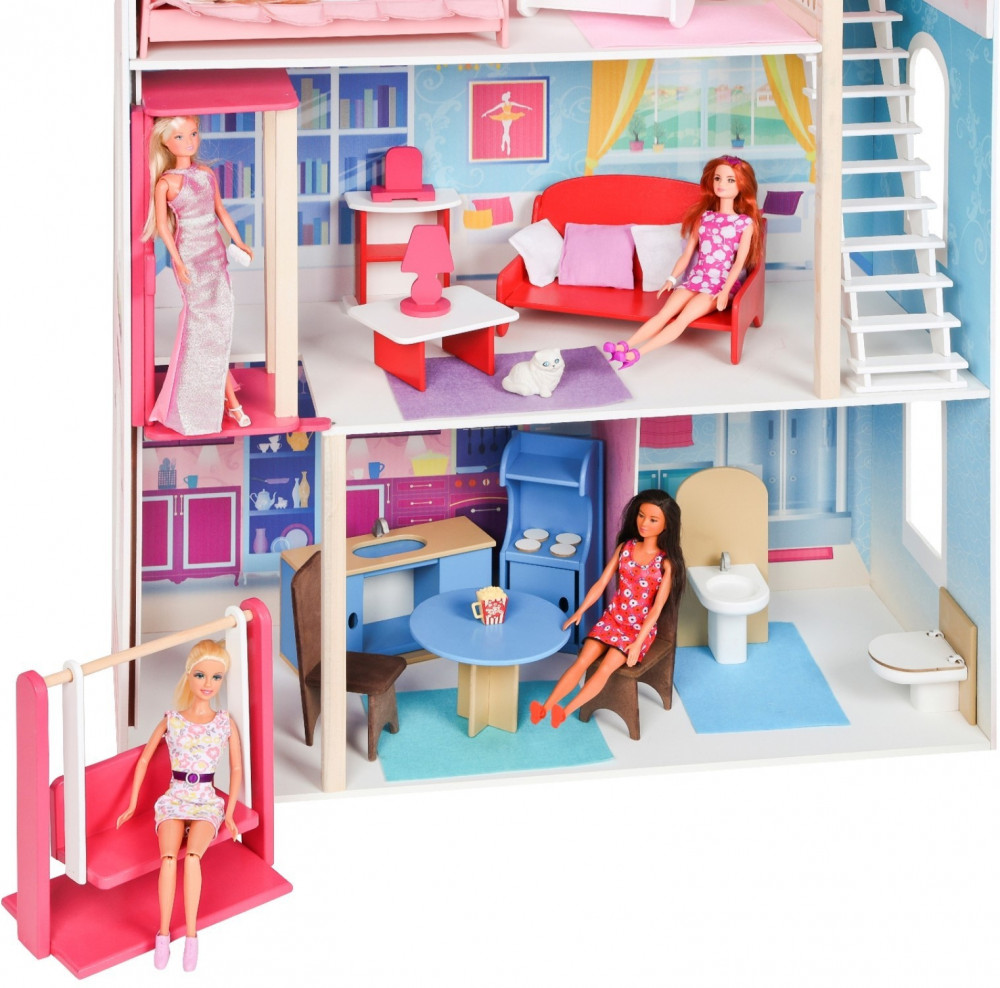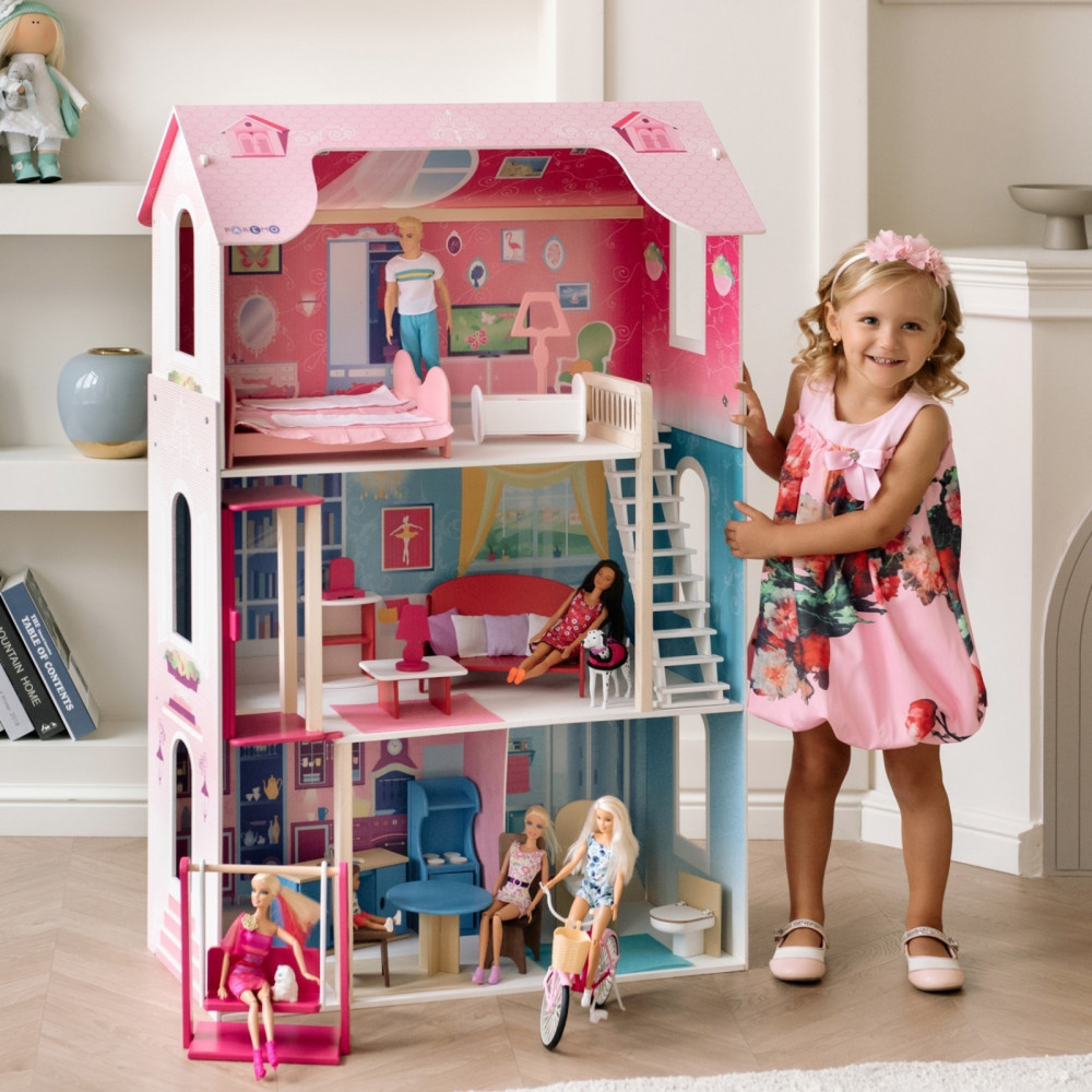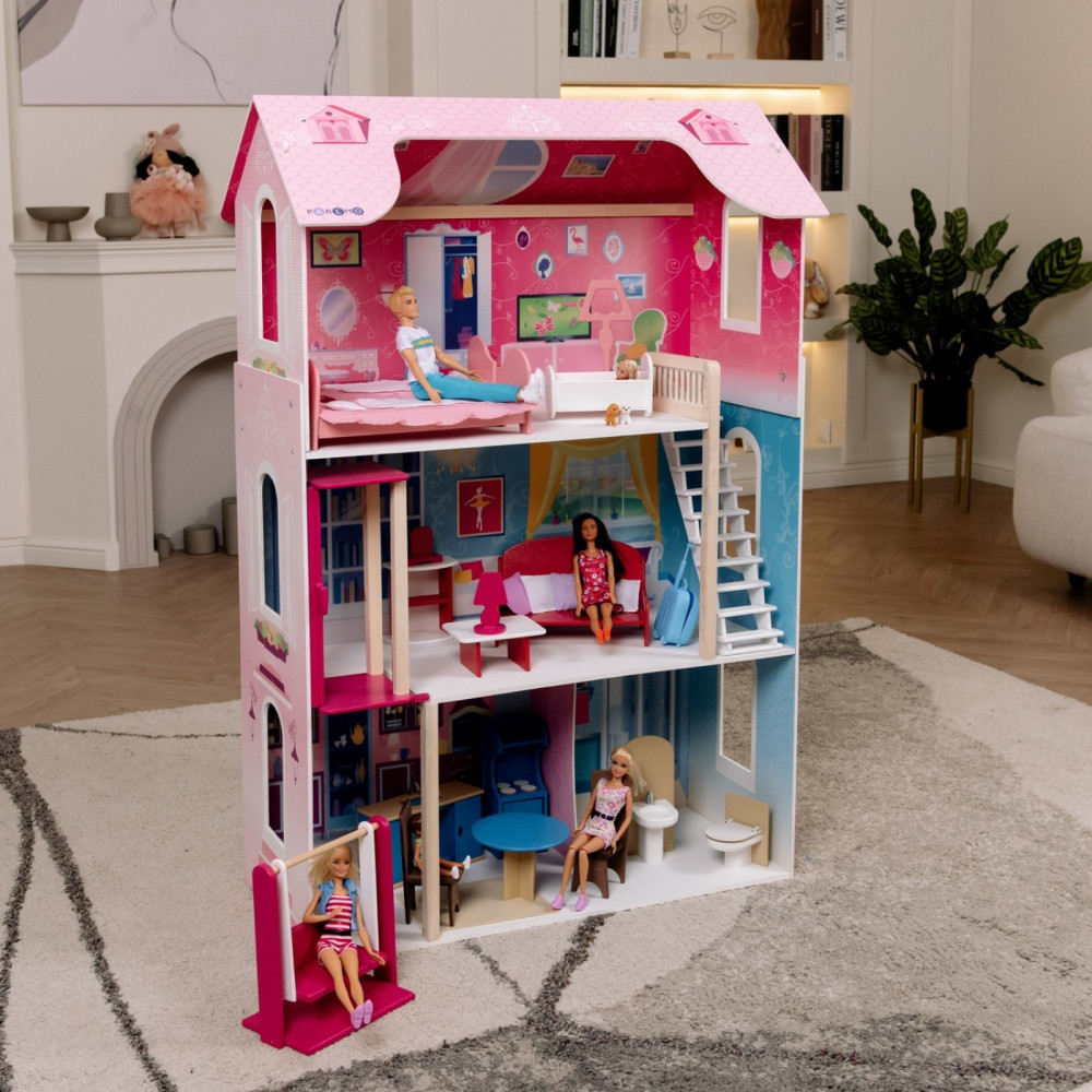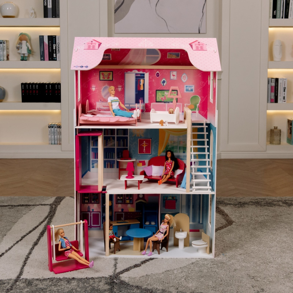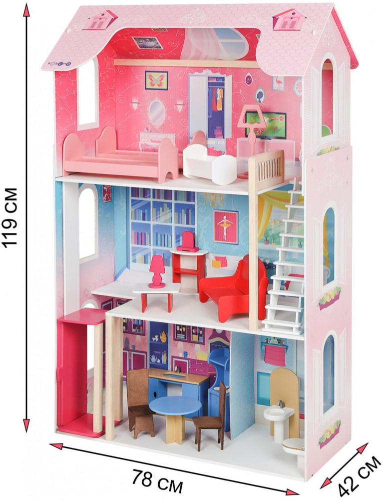 💳 Оплатить за товар можно при получении 🇰🇿 Есть бесплатная доставка по Казахстану от 1 дня 🎁 Копите бонусы с каждой покупки Домик предназначен для девочек старше трехлетнего возраста. Игрушка 100% деревянная, ни одного пластикового или картонного элемента в каркасе и мебели. Игрушечный дом для кукол «Муза» частично открытый (задняя стенка глухая, все игровые зоны с лицевой стороны полностью доступны для игры). Разработан специально для кукол высотой до 30 см (прекрасно подходит для Barbie, Winx, Moxie, Bratz, Sonya Rose). Домик, выполненный в классическом для девичьей игрушки розовом цвете. Игрушку отличает яркий принт по дереву и использование премиального материала флок. Модификация: трехэтажный, четырехкомнатный, с лестницей, лифтом и качелями. |
