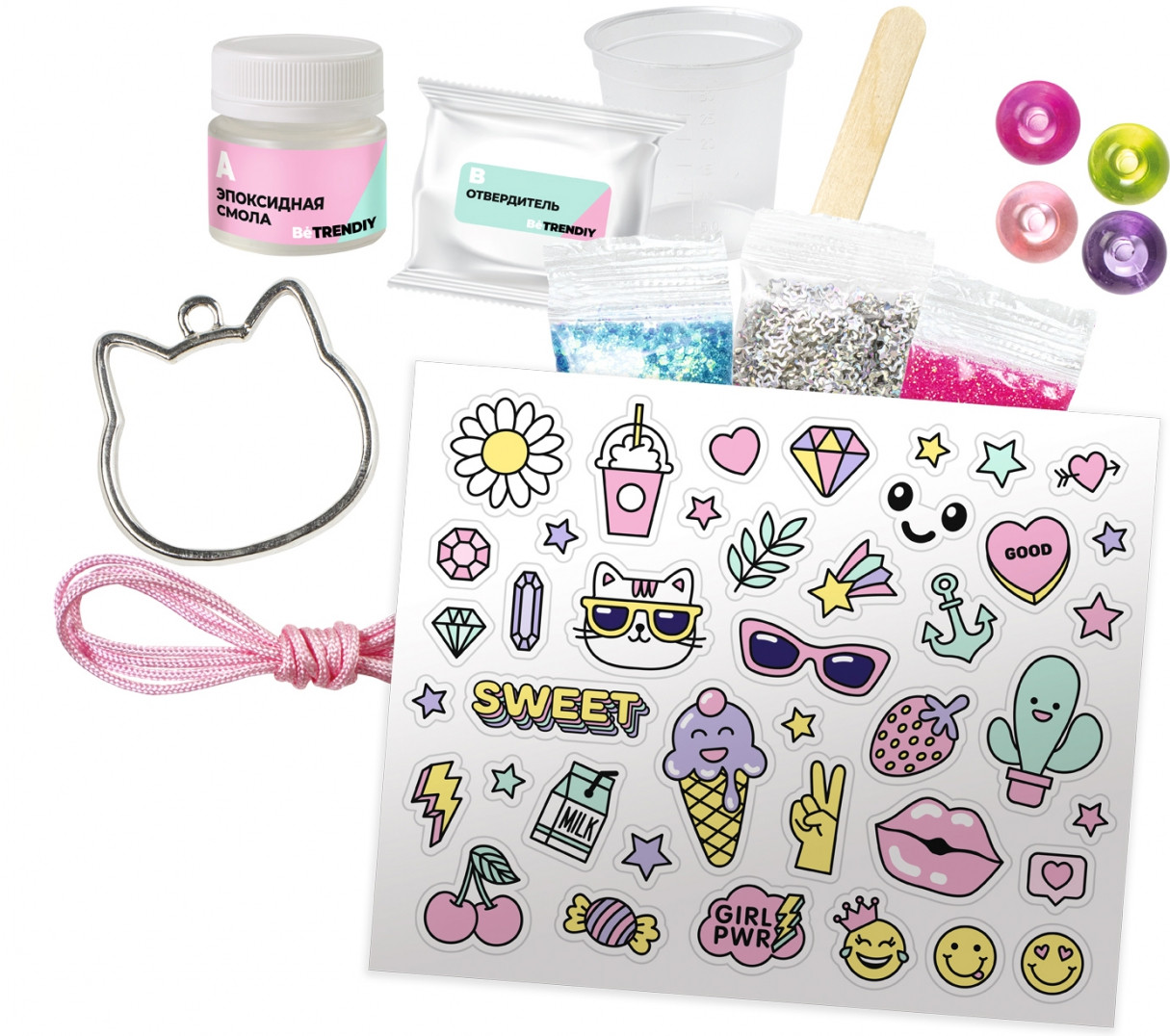 Be TrenDIY Epoxy — наборы по созданию трендовых украшений и аксессуаров из эпоксидной смолы. Замешай, залей и носи! В наборах подобраны фурнитура, декор, наклейки — готовые решения для создания украшений, которые хочется носить. Создавай свои уникальные украшения!