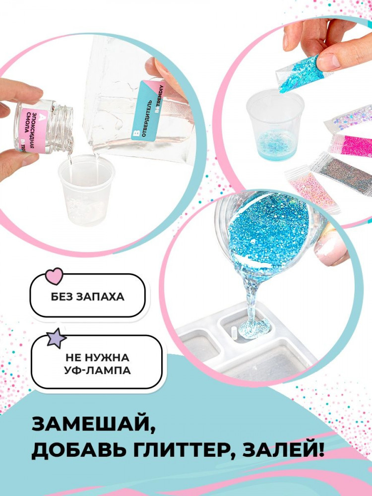 Следуя инструкции, ребенок справится с заданием самостоятельно и 100%. Надо только смешать ингредиенты, залить в многоразовые формы из набора и дождаться, пока эпоксидная смола застынет! Эпоксидная смола из набора для творчества без запаха и застывает в среднем за 12 часов. Сделав украшение вечером, с утра девочка уже сможет носить его!