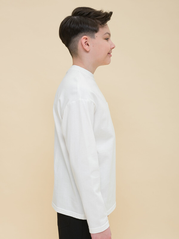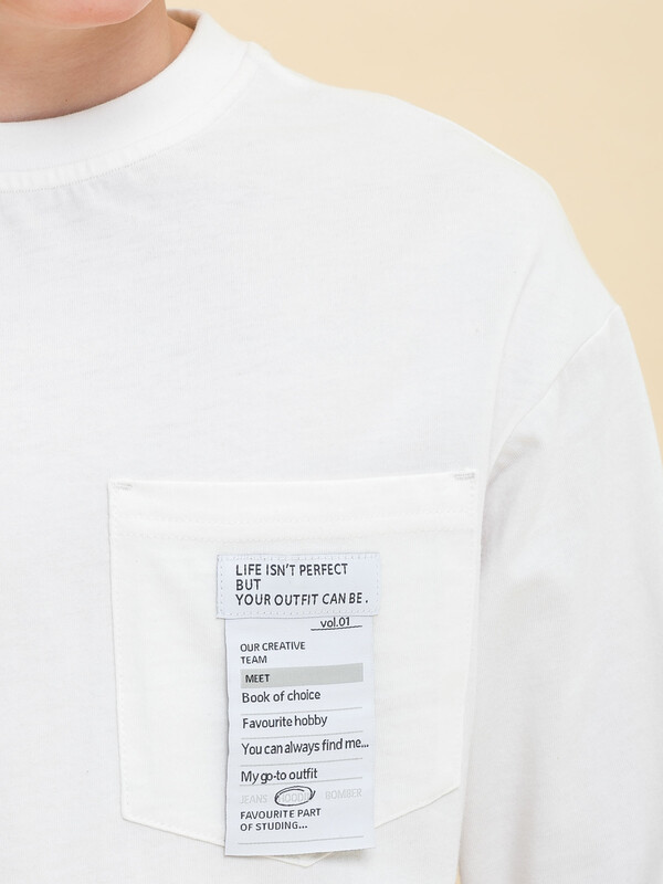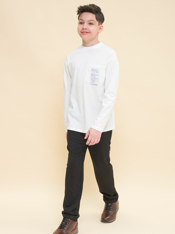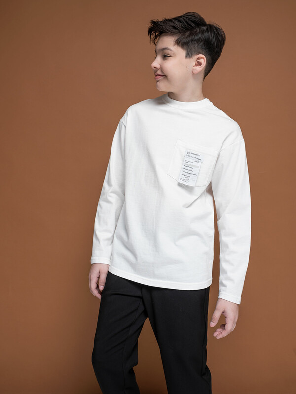 Pelican Джемпер для мальчиков лонгслив, белый с накладным карманом с нашивкой, базовый