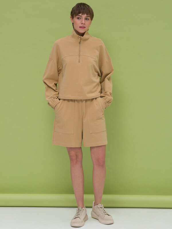 В целом, я довольна. Цвет приятный, по длине изделие мне подходит. Понравилась, что можно затянуть или наоборот опустить, и носить толстовку по-разному.