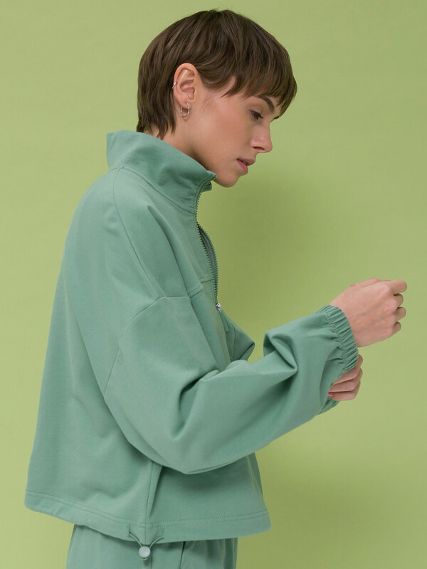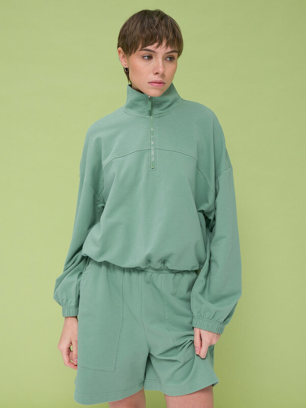 В целом, я довольна. Цвет приятный, по длине изделие мне подходит. Понравилась, что можно затянуть или наоборот опустить, и носить толстовку по-разному.