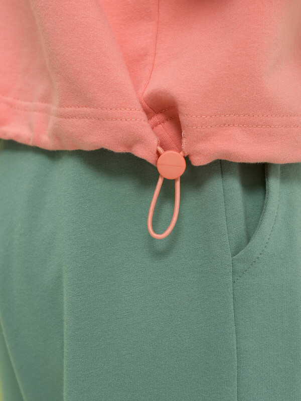 В целом, я довольна. Цвет приятный, по длине изделие мне подходит. Понравилась, что можно затянуть или наоборот опустить, и носить толстовку по-разному.