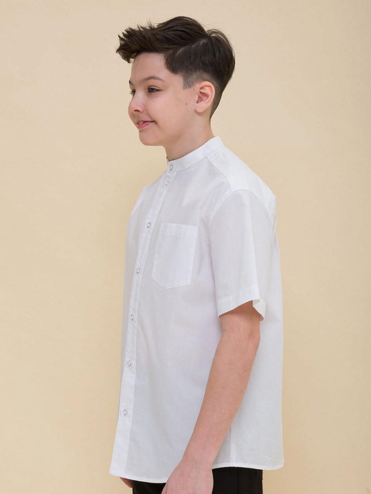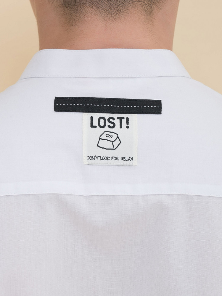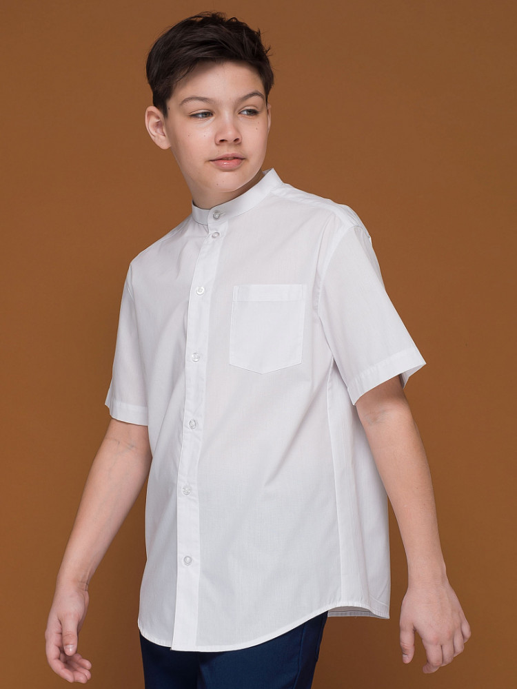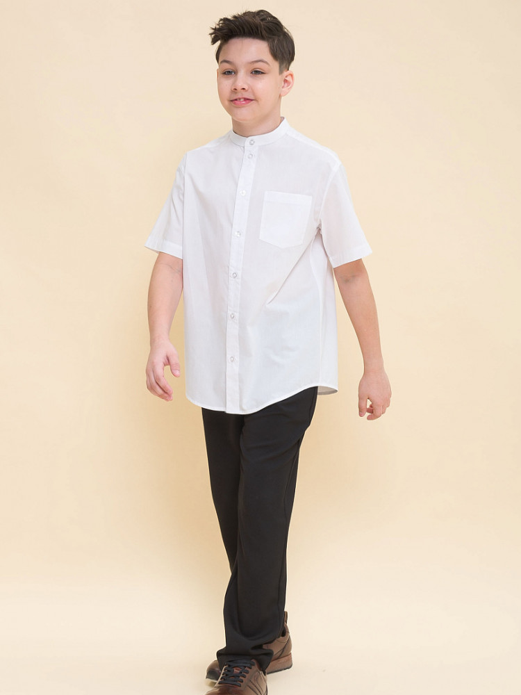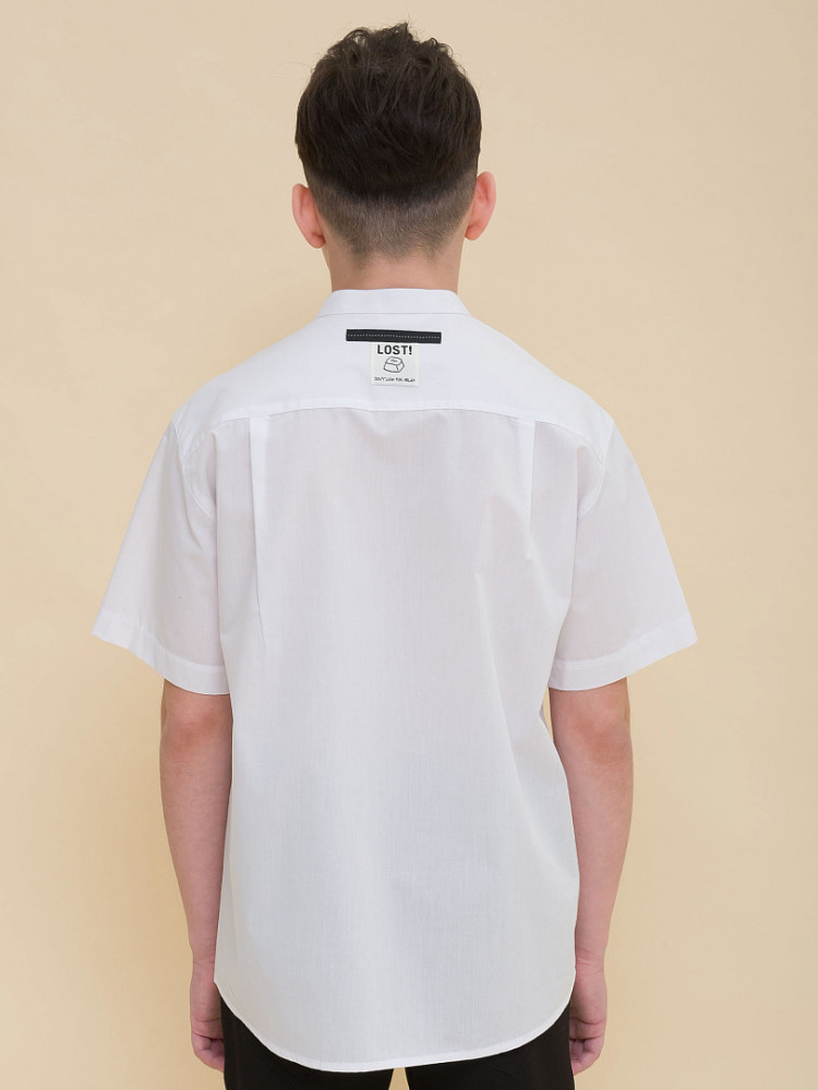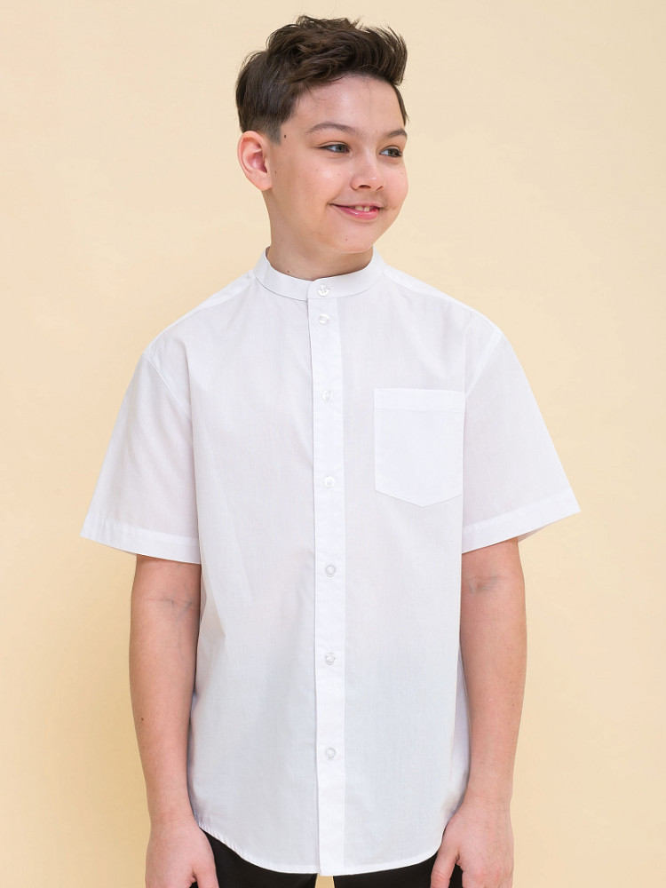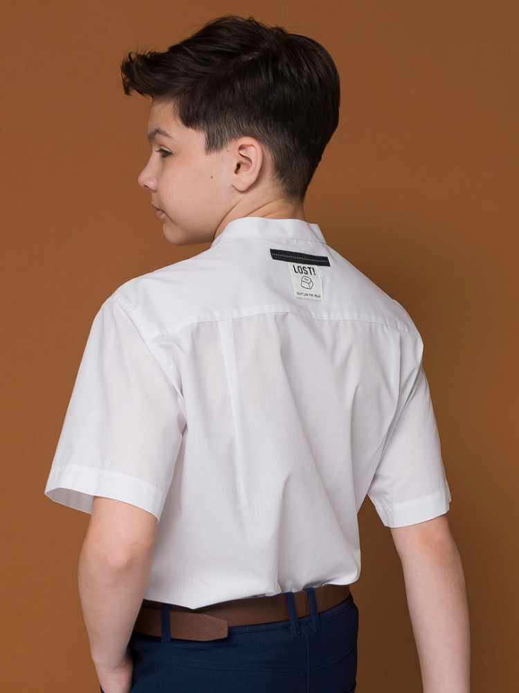Школьная рубашка свободного силуэта с воротником-стойкой для мальчика. В составе ткани преобладает хлопок — изделие мягкое, дышащее и комфортное. Полиэстер помогает не терять форму и отличный внешний вид. По спинке кокетка с двумя защипами для свободы движения, по переду накладной карман — актуальные тренды сезона. Изюминка изделия — нашивка с забавным мотивирующим текстом на спинке: игра слов «потерять контроль; не ищи отдыха». Благодаря свободному силуэту подходит мальчикам с разными типами фигуры и носить не один сезон. Великолепно сочетается с различными брюками, пиджаками, жилетами. Модный и практичный вариант рубашки для школы.