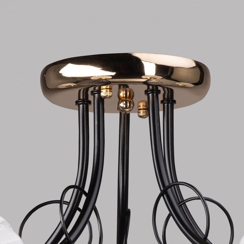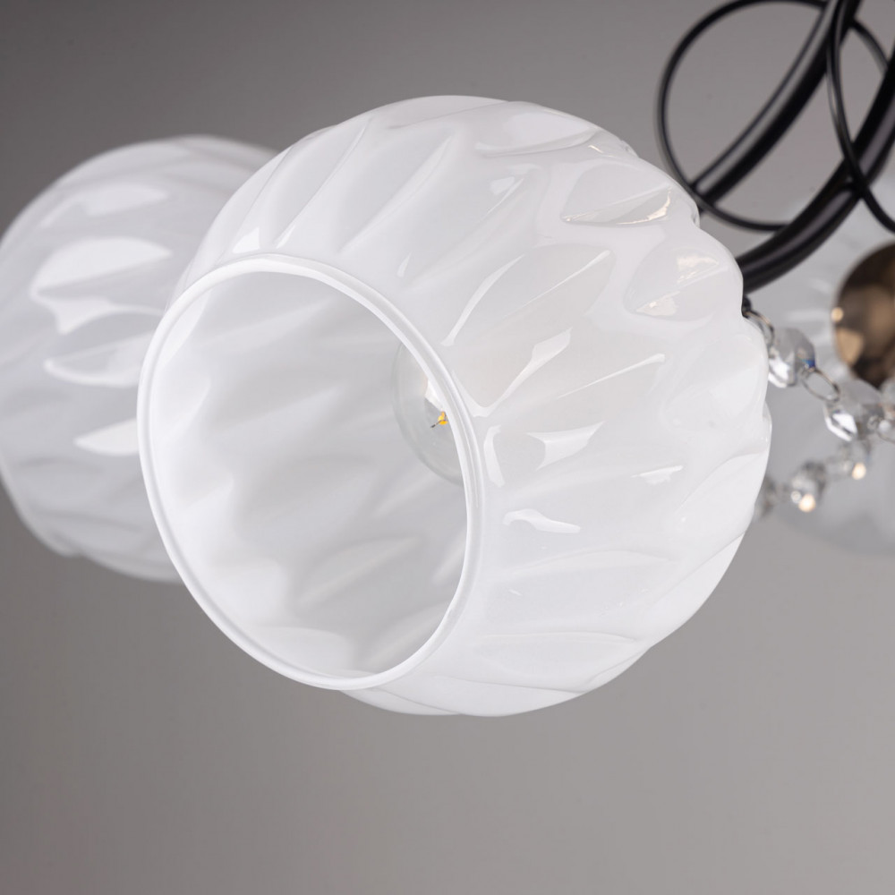 💳 Оплатить за товар можно при получении 🇰🇿 Есть бесплатная доставка по Казахстану 🎁 Копите бонусы с каждой покупки Серия: Грация Контрастное сочетание черного и золотого цвета в тренде. Фактурное стекло плафонов красиво преломляет свет. Белые плафоны создают комфортное освещение. Декор из металлических колец и хрустальных бус придает люстре объема. Компактный размер потолочной люстры позволяет сохранить пространство комнаты при стандартном потолке. Заменяемые источники света удобны в эксплуатации. Металлическое основание потолочной люстры гальванизировано в цвет золота. Рожки окрашены в черный цвет. Белые стеклянные плафоны выдуваются в сложную форму. Потолочная люстра декорирована прозрачным хрусталем формы октагон. |