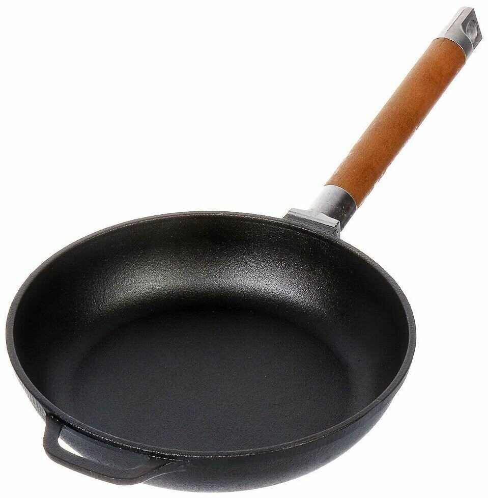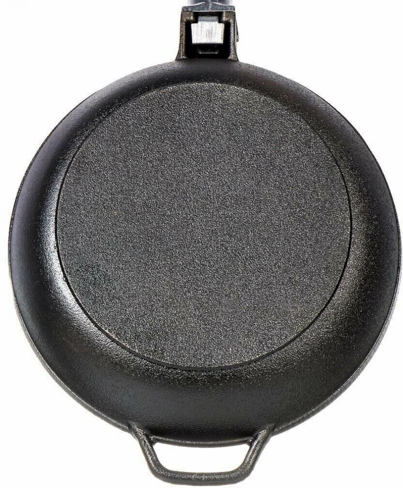 Прекрасная чугунная сковорода. Сразу начала готовить на ней, и не разочаровала. Устойчива на плите, не заваливается. Ручка удобная, легко отсоединяется и надежно крепится. Размер сковороды соответствует описанию. Теперь никакого тефлона, керамических покрытий и т. д. Надежно и полезно, и на сто лет хватит!
