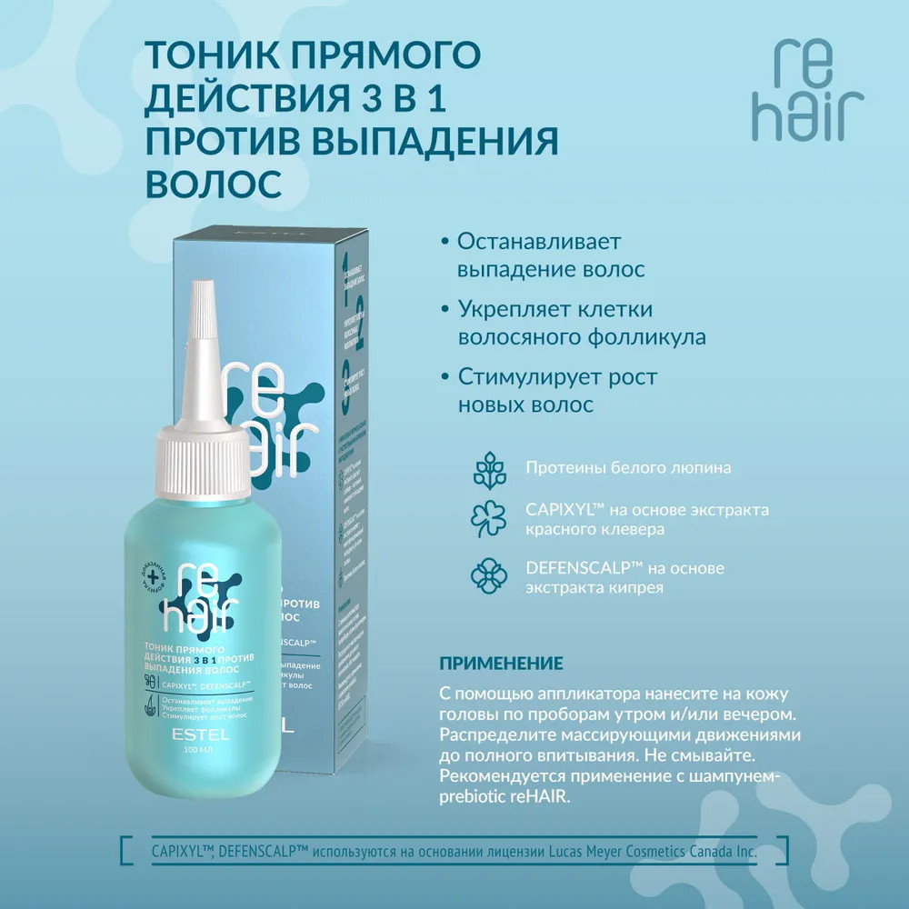 💳 Оплатить за товар можно при получении 🇰🇿 Есть бесплатная доставка по Казахстану от 1 дня 🎁 Копите бонусы с каждой покупки Серия: reHAIR Тоник против выпадения волос прямого действия 3 в 1 останавливает выпадение, укрепляет фолликулы, стимулирует рост волос. Протеины белого люпина на основе экстракта красного клевера — активный комплекс от выпадения волос на основе экстракта кипрея — многофункциональный ингредиент для кожи головы. |
