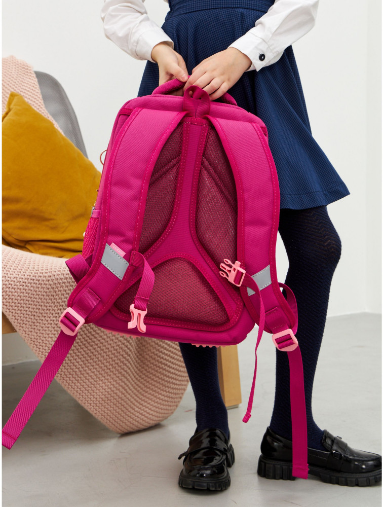 шикарный слов нет. но почему то он доче не понравился. выбирали между двумя рюкзаками одинакого размера. выбрала другой. размер конечно на рослых детей младших классов или с роста 140 примерно хорошо будет. габаритный. аккуратненький. качественный яркиййййй. очень красивый.
