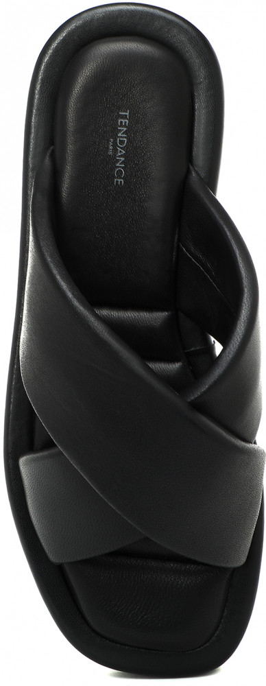 Шлепанцы — это идеальный вариант летней открытой обуви для тех, кто ценит комфорт. Верх модели и подкладка изготовлены из натуральной кожи козленка, которая приятна на ощупь и долго сохраняет свой внешний вид. Материал позволит ногам дышать и меньше потеть. Материал подошвы — резина, платформа обтянута кожей. Толщина подошвы — 3,7 см. Способ соединения подошвы — клеевой.