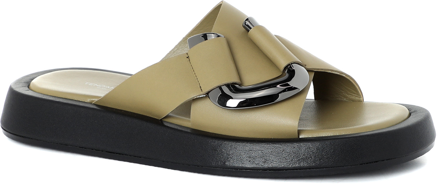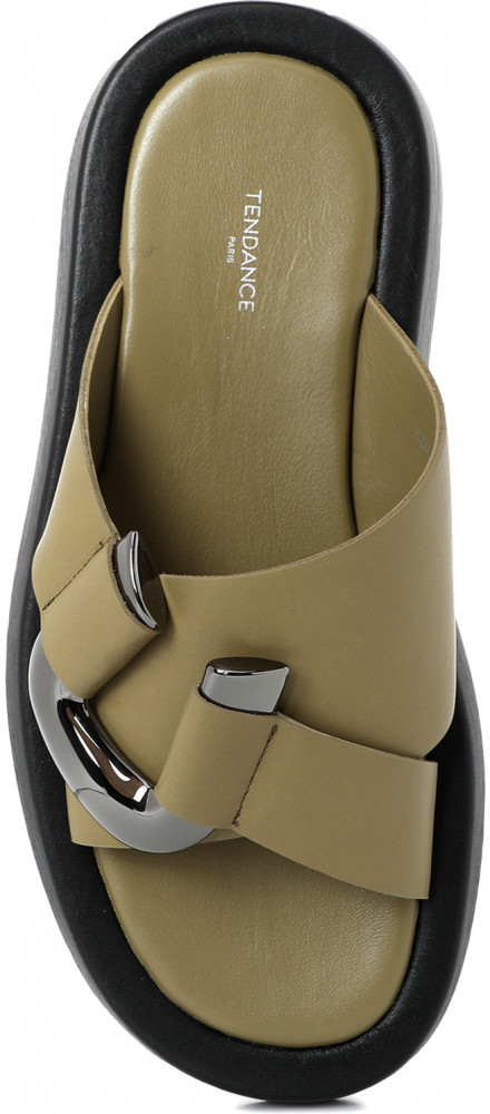 Шлепанцы — это идеальный вариант летней открытой обуви для тех, кто ценит комфорт. Модель изготовлена из натуральной кожи теленка — мягкого и эластичного материала. Он свободно пропускает воздух и быстро принимает индивидуальную форму стопы. Шлепанцы держится на ноге за счет широких кожаных ремешков, которые украшены крупной пластиковые деталью. Подкладка и стелька из натуральной кожи позволит ногам дышать и меньше потеть. Натуральная кожа сохраняет здоровый микроклимат в обуви, ведь она быстро впитывает и испаряет влагу. Благодаря этому, в шлепанцах будет комфортно на протяжении долгой прогулки даже в самый жаркий день. Стелька на модели объемная и мягкая, она дополнительно снизить нагрузку на ваши стопы. Утолщенная резиновая подошва 3 см не даст вам ощущать мелкие неровности на дороге. Платформа обтянута кожей. Способ соединения подошвы — клеевой.