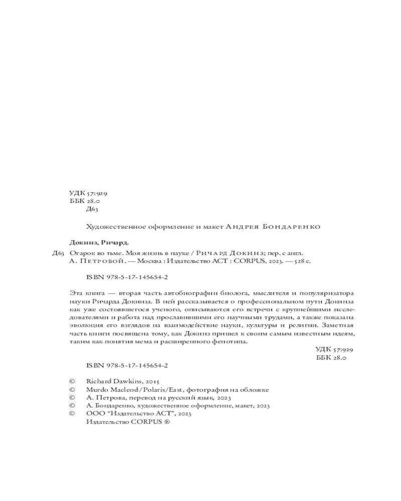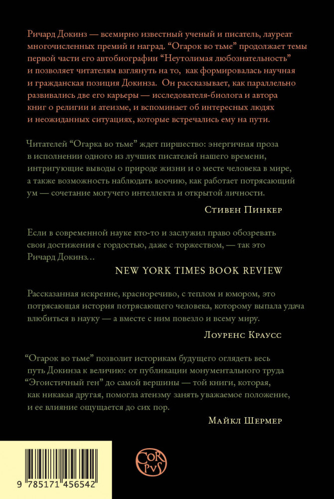 💳 Оплатить за товар можно при получении 🇰🇿 Есть бесплатная доставка по Казахстану от 1 дня 🎁 Копите бонусы с каждой покупки Серия: Весь Ричард Докинз Эта книга — вторая часть автобиографии биолога, мыслителя и популяризатора науки Ричарда Докинза. В ней рассказывается о профессиональном пути Докинза как уже состоявшегося ученого, описываются его встречи с крупнейшими исследователями и работа над прославившими его научными трудами, а также показана эволюция его взглядов на взаимодействие науки, культуры и религии. Заметная часть книги посвящена тому, как Докинз пришел к своим самым известным идеям, таким как понятия мема и расширенного фенотипа. |