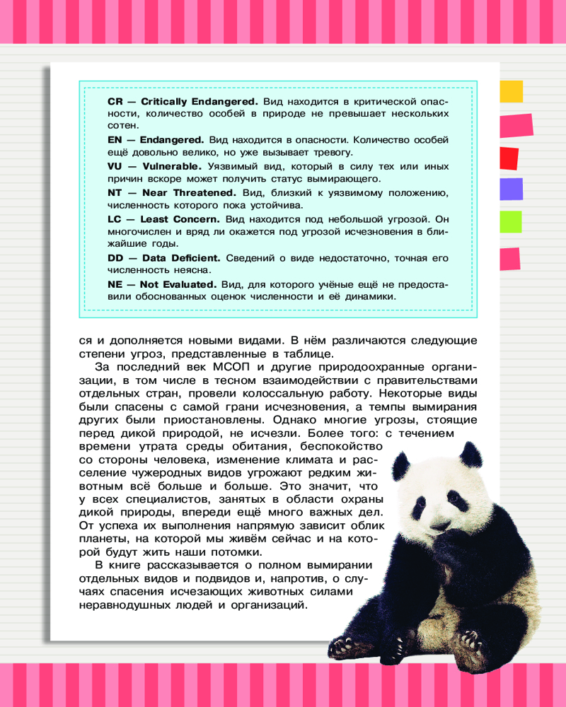 💳 Оплатить за товар можно при получении 🇰🇿 Есть бесплатная доставка по Казахстану от 1 дня 🎁 Копите бонусы с каждой покупки Серия: Красная книга нашей планеты В этом сборнике собраны самые грустные и самые оптимистичные страницы Красной книги. «Чёрные страницы» — это рассказ о вымерших животных. Они полностью исчезли с лица Земли, и чаще всего причиной гибели этих видов стала деятельность человека. К ним примыкают «Серые страницы»: в них собраны виды, которым грозит серьезная опасность. «Белые страницы» — удивительные и трогательные истории о животных, которых удалось спасти и вернуть в дикую природу. Это победа неравнодушных людей, внимательно относящихся к окружающему миру, не сдающихся под давлением обстоятельств. И эти истории дарят человечеству надежду на сохранение прекрасного мира дикой природы в самых разных уголках земного шара. |