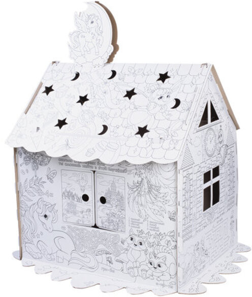 Серия: Kids Картонный развивающий домик-раскраска «Для маленькой принцессы» — большой домик для юных художников! В процессе раскрашивания ребенок познакомится с русским алфавитом, счетом, планетами, а также улучшит навыки рисования.