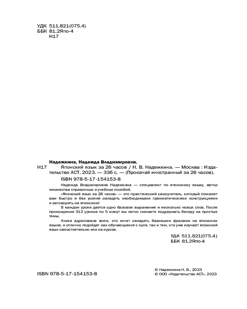 💳 Оплатить за товар можно при получении 🇰🇿 Есть бесплатная доставка по Казахстану от 1 дня 🎁 Копите бонусы с каждой покупки Серия: Прокачай иностранный за 26 часов Надежкина Надежда Владимировна — специалист по японскому языку, автор множества справочных и учебных пособий. |