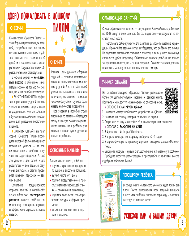3-4 года. Дошкола Тилли. Первый счёт. Развивающие задания с наклейками+87