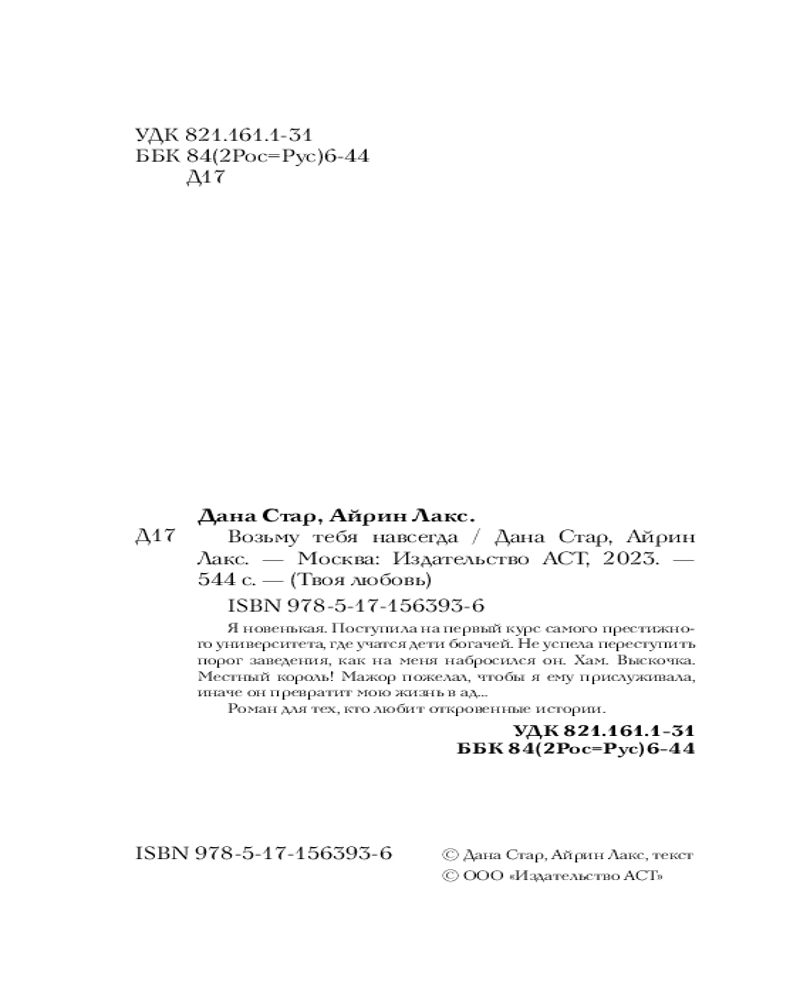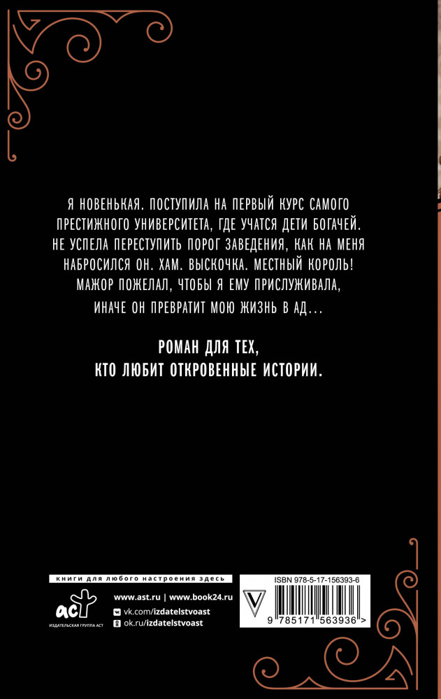 💳 Оплатить за товар можно при получении 🇰🇿 Есть бесплатная доставка по Казахстану от 1 дня 🎁 Копите бонусы с каждой покупки Серия: Твоя любовь Я новенькая. Поступила на первый курс самого престижного университета, где учатся дети богачей. Не успела переступить порог заведения, как на меня набросился он. Хам. Выскочка. Местный король! Мажор пожелал, чтобы я ему прислуживала, иначе он превратит мою жизнь в ад... |