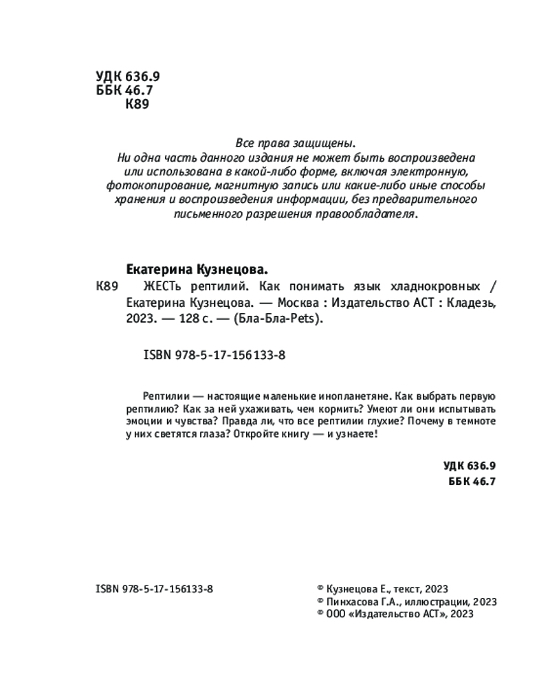 Серия: Бла-Бла-Pets Рептилии — настоящие маленькие инопланетяне. Как выбрать первую рептилию? Как за ней ухаживать, чем кормить? Умеют ли они испытывать эмоции и чувства? Правда ли, что все рептилии глухие? Почему в темноте у них светятся глаза? Откройте книгу — и узнаете! |