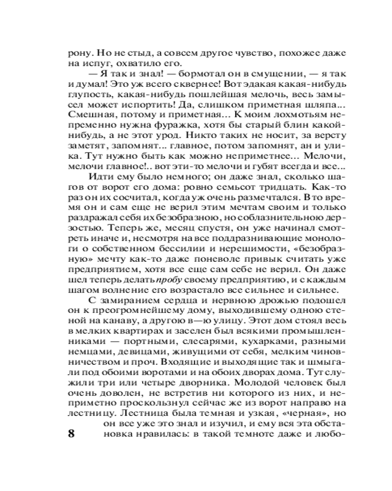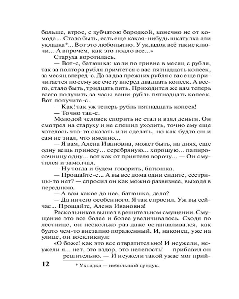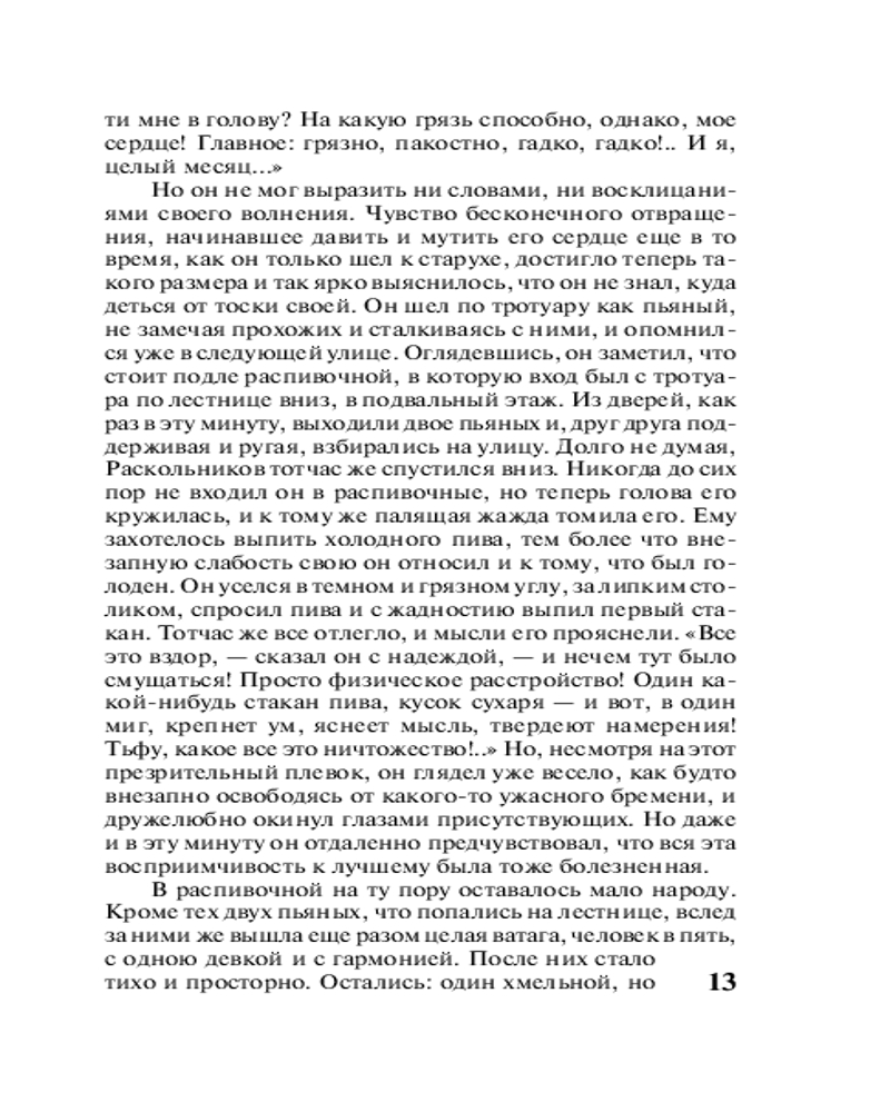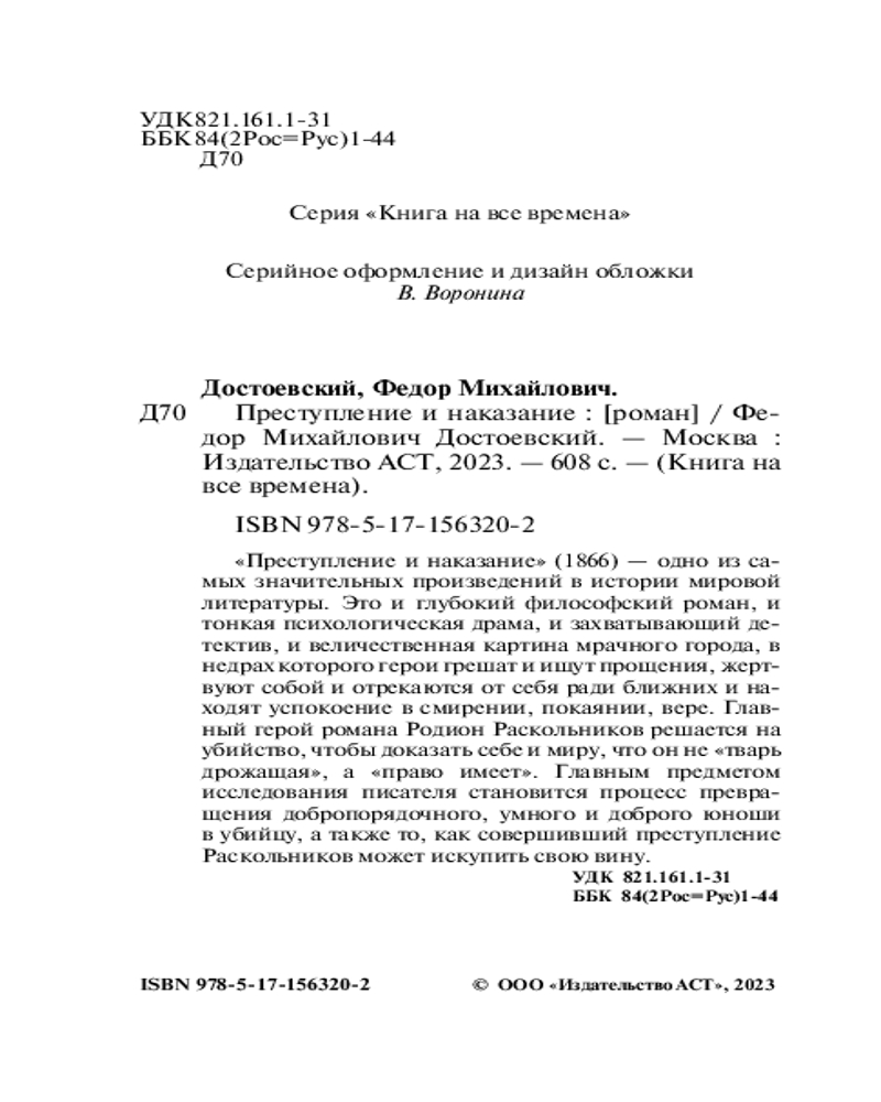 Преступление и наказаниеВ данный момент этот товар отсутствует в продаже. Возможно, у нас найдется аналогичный или похожий товар здесь. Серия: Книга на все времена (нов/м) «Преступление и наказание» (1866) — одно из самых значительных произведений в истории мировой литературы. Это и глубокий филососфский роман, и тонкая психологическая драма, и захватывающий детектив, и величественная картина мрачного города, в недрах которого герои грешат и ищут прощения, жертвуют собой и отрекаются от себя ради ближних и находят успокоение в смирении, покаянии, вере. Главный герой романа Родион Раскольников решается на убийство, чтобы доказать себе и миру, что он не «тварь дрожащая», а «право имеет». Главным предметом исследования писателя становится процесс превращения добропорядочного, умного и доброго юноши в убийцу, а также то, как совершивший преступление Раскольников может искупить свою вину. |