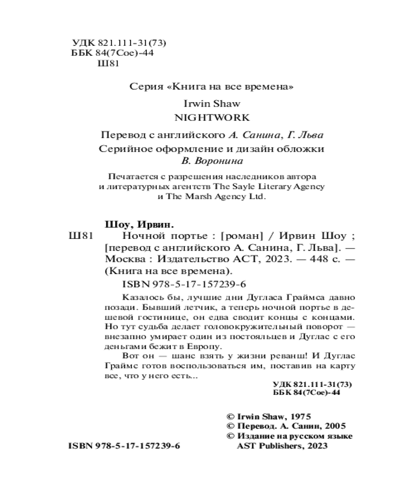Ночной портье-20% +37 качество интересный сюжет легко читается