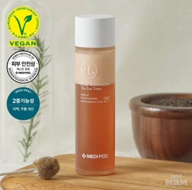 Medi Peel Тонер для повышения эластичности с комбучейВ данный момент этот товар отсутствует в продаже. Возможно, у нас найдется аналогичный или похожий товар здесь. Тонер с комбучей и гиалуроновой кислотой интенсивно увлажняет как внешние, так и внутренние слои эпидермиса, повышает эластичность и упругость кожи, способствует эффективному оздоровлению кожи: борется с сухостью, чувством стянутости, особенно после умывания, уменьшает чувствительность и снимает покраснение, смягчает огрубевшую кожу и нормализует выработку себума. Двухфазное средство в пропорции 7:3 состоит из эссенции из комбучи и гиалуроновой эмульсии молочной консистенции, которые при смешивании образуют нежную шелковистую текстуру. Комбуча, составляющая 70% тонера, произведена всемирно известной английской компанией Ahmad Tea из высококачественного черного чая, прошедшего ферментацию при температуре 29° в течение 336 часов. Эмульсия, составляющая оставшиеся 30%, содержит 8 видов гиалуроновой кислоты и липосомы с 5 видами керамидов. Тонер является функциональным средством против морщин и для осветления тона, а также 100% веган средством. Экологичная упаковка создана из органических переработанных материалов с нанесением соевых чернил. |