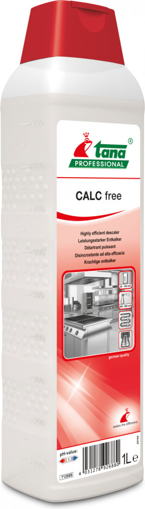 • для очистки ПММ: отключить дозирующее оборудование → добавить в бак средство CALC free из расчета 500мл на 30 литров воды → дать поработать машине без посуды 15–20 минут → спустить воду и хорошо промыть внутренние поверхности чистой водой;