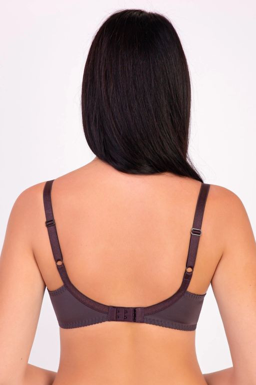 Бюстгальтер из эластичного полотна, трикотажного полотна и эластичного кружева. На каркасах. Мягкие чашки с тройным диагональным членением. Застёжка в 4 ряда крючков.