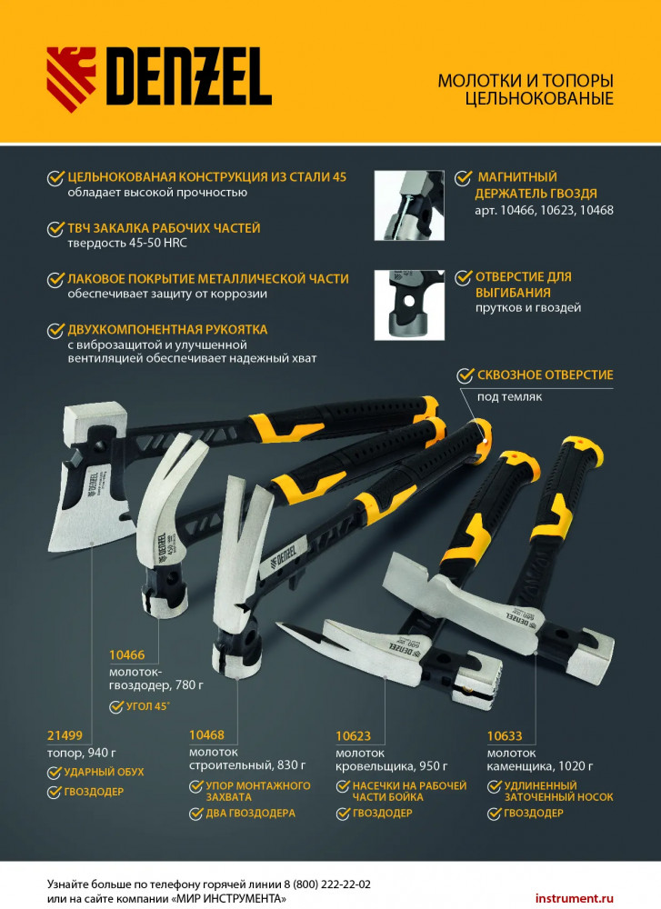 | Торговая марка Denzel предлагает широкий спектр силового и электрооборудования, а также разнообразный ручной инструмент. Наше оборудование разработано для удовлетворения потребностей разнообразных пользователей, включая владельцев частных домов, садоводов, фермеров, DIY-мастеров, профессиональных строителей, автолюбителей и специалистов автосервисов. Продукция Denzel сочетает в себе высокое качество и надежность, что делает ее идеальным выбором для выполнения самых разнообразных задач.... |