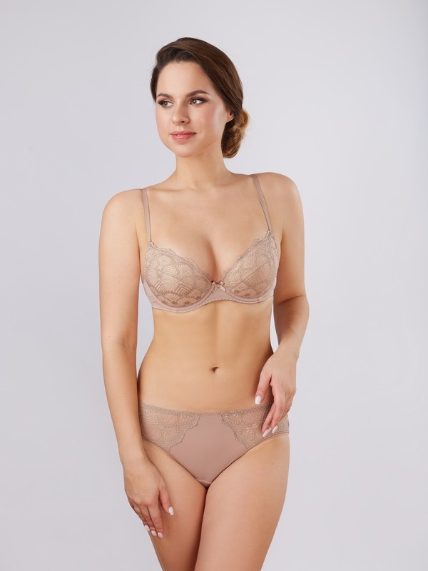Кружевной бюстгальтер push-up от Милавица. Бюстгальтер пуш-ап из эластичного кружева и эластичного сетчатого полотна, на каркасах. Чашки на дубляже с хлопком, с объемными съемными вкладышами. Боковые детали выполнены из полупрозрачной эластичной сетки. Бретель регулируемая, не съемная. Отделка — бантик.