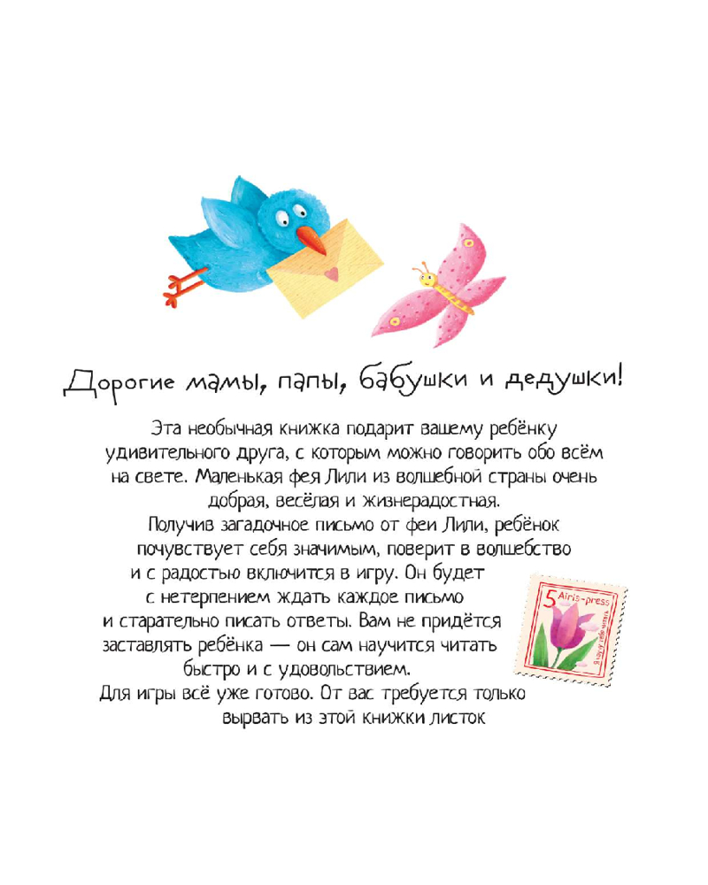 💳 Оплатить за товар можно при получении 🇰🇿 Есть бесплатная доставка по Казахстану от 1 дня 🎁 Копите бонусы с каждой покупки Серия: Письма для тебя В блокноте представлен уникальный метод обучения чтению. Это 30 волшебных писем от феи Лили, адресованных ребёнку. Ребёнок читает их сам, без помощи взрослых. Родителям нужно просто каждый вечер незаметно класть готовое письмо под подушку спящего ребёнка. Уровень сложности рассчитан на детей, которые могут читать простые тексты. При желании фее можно написать ответ. Для этого в блокноте есть готовые письма-конверты и марки-наклейки. Также в письмо можно дополнительно вложить листочек с интересным заданием. |