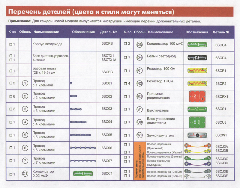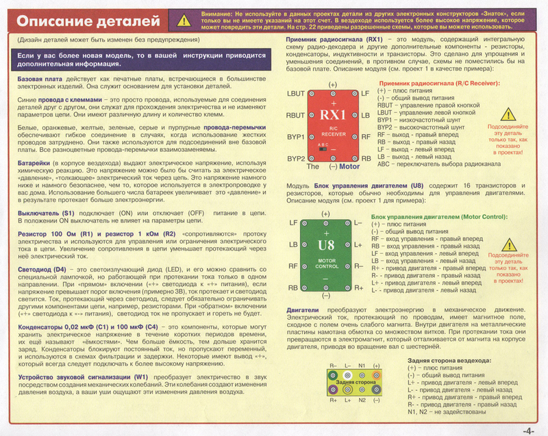 Помимо этого в прилагаемой книге Вы найдёте перечень элементов конструктора и их описание.