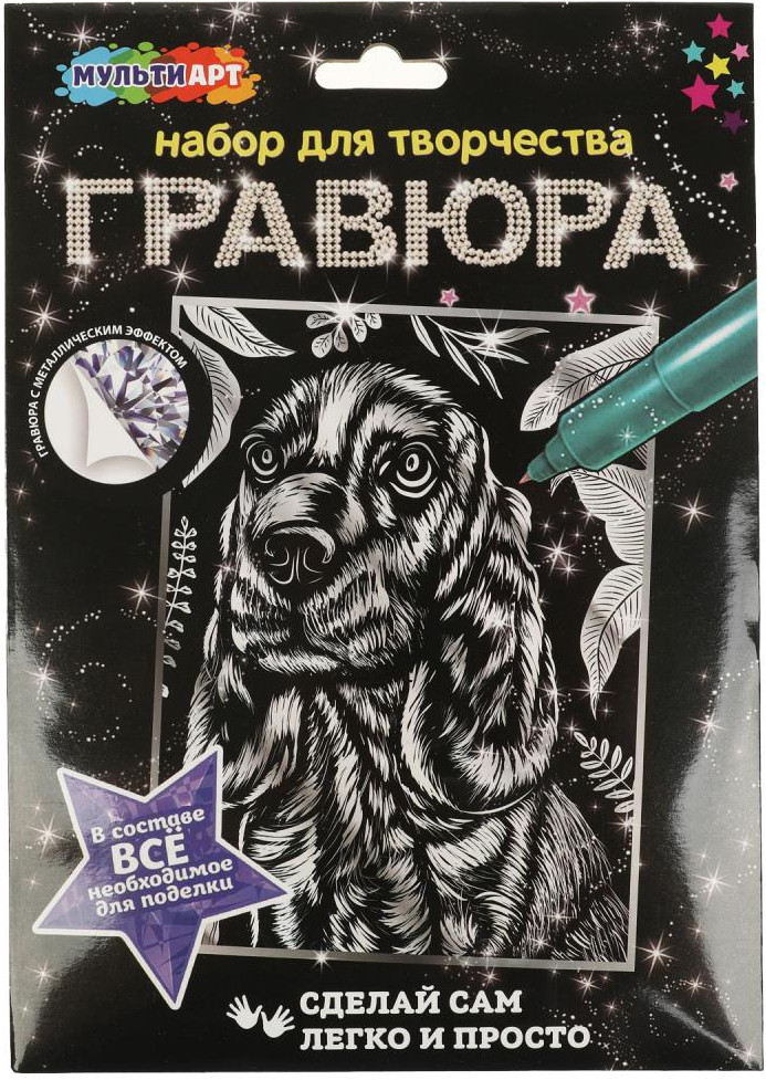 Набор для творчества «Гравюра. Кокер спаниель» ТМ «Мульти Арт» — отличный подарок для ребёнка, который будет способствовать развитию его творческих способностей: