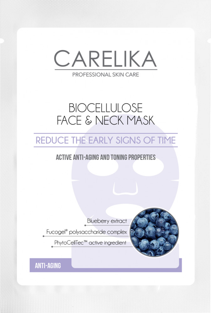 Carelika Маска для лица и шеи биоцеллюлозная антивозрастная