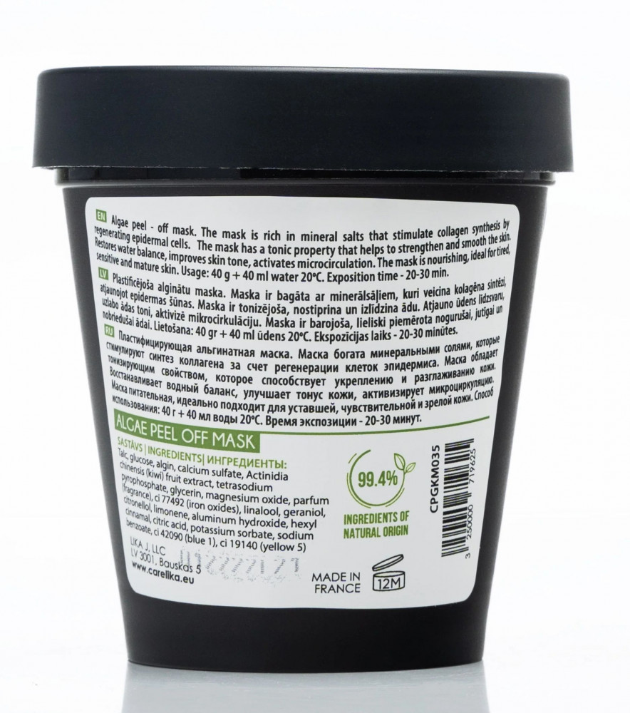 Carelika Маска для лица восстанавливающая антиоксидантная из водорослей с киви и глюкозой