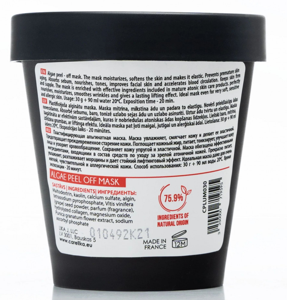 Carelika Маска для лица антивозрастная с лифтинг-эффектом «Экстракт граната и витамин С»