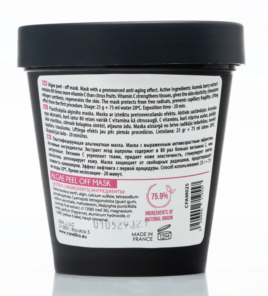 Carelika Маска для лица антивозрастная из водорослей с экстрактом ягод ацеролы