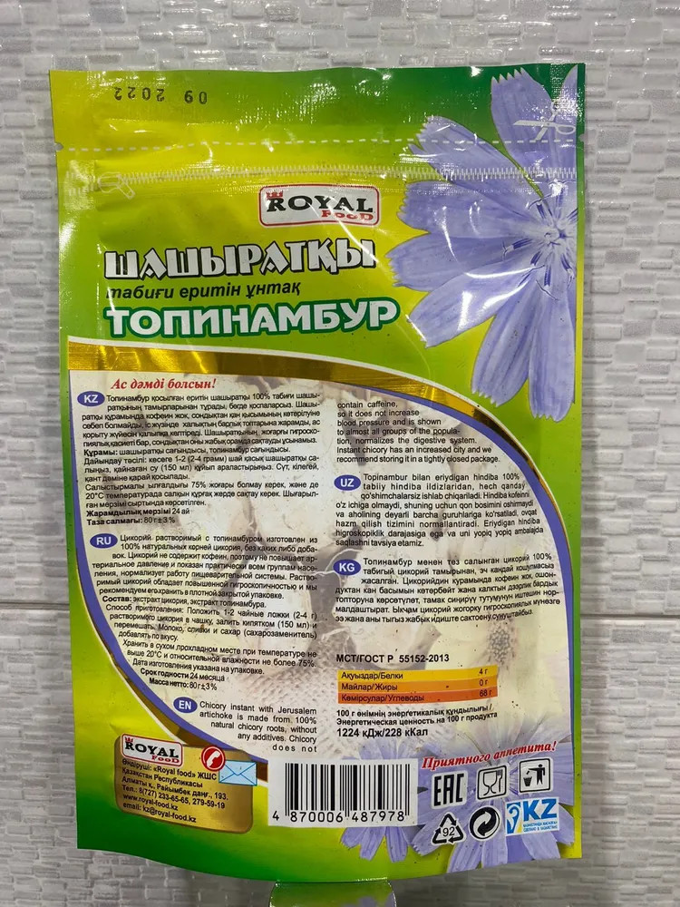 Цикорий — это Здоровье и Польза. Растворимый цикорий изготовлен из 100% натуральных корней цикория, без каких либо добавок. Не содержит кофеин, поэтому не повышает артериальное давление и показан практически всем группам населения. Растительное пищевое волокно - инулин, содержащийся в цикории стимулирует рост и активность полезных бифидобактерий, тем самым нормализует работу пищеварительной системы. Природный цикорий богат различными минеральными веществами, органическими кислотами, витаминами, белками и другими веществами, полезными для организма человека. Превосходный вкус растворимого цикория с легкой приятной горчинкой достигается благодаря ультрасовременным технологиям производства, которые позволяют сохранить все ценные качества, присущие природному цикорию.