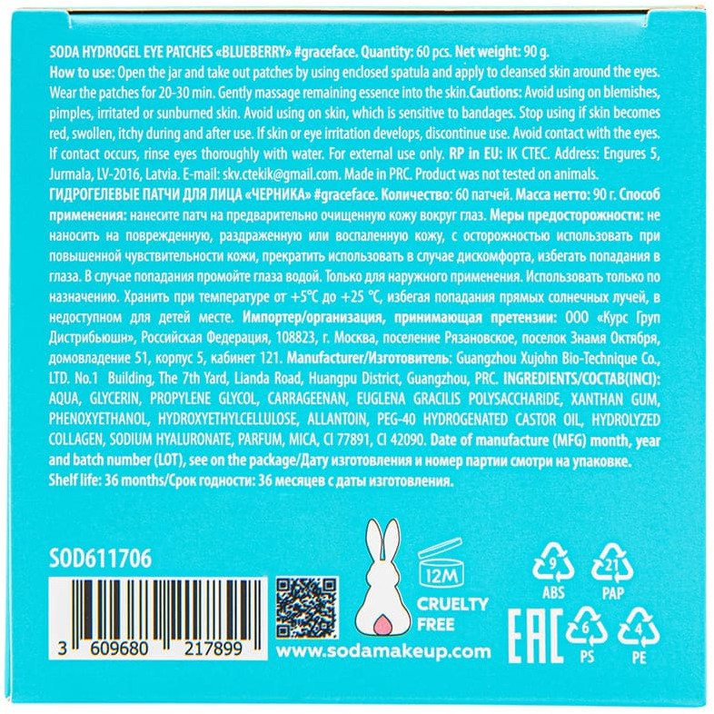 Soda Патчи для лица «Черника»В данный момент этот товар отсутствует в продаже. Возможно, у нас найдется аналогичный или похожий товар здесь. Хочешь стать самой сладкой ягодкой? Тогда используй эти гидрогелевые патчи! Они пахнут супер вкусно, прямо как свежие ягоды! Вау, они еще и ярко сияют! И ты будешь сиять после использования этих патчей. Освежающие, блестящие, шикарные. Этот продукт не тестировался на животных. |