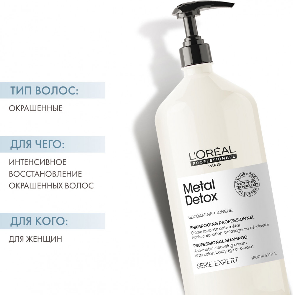 💳 Оплатить за товар можно при получении 🇰🇿 Есть бесплатная доставка по Казахстану от 1 дня 🎁 Копите бонусы с каждой покупки Серия: Metal Detox Запатентованная молекула гликоамин в составе безсульфатного шампуня «Metal Detox» нейтрализует воздействие металлов и заботится о качестве волос, поддерживая результат салонного окрашивания, балаяжа или осветления. Плотная, нежная пена легко смывается. Шампунь обладает ароматом «Golden Caviar» — идеальная гармония терпкого бергамота и обволакивающего древесно-мускусного аккорда. |