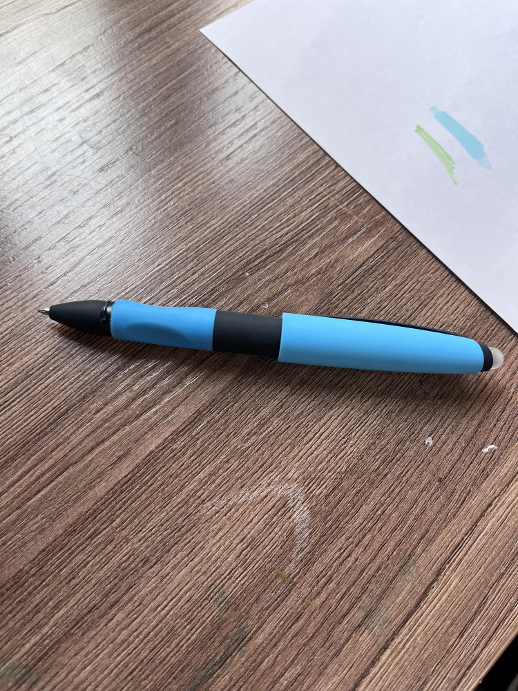 Очень хорошая ручка. Пишет ярко и без «проплешин» как в других ручках пиши-стирай. Удобно, что есть 3 запасных стержня. Сама ручка трехгранная, что тоже удобно, особенно если захват ручки неправильный.