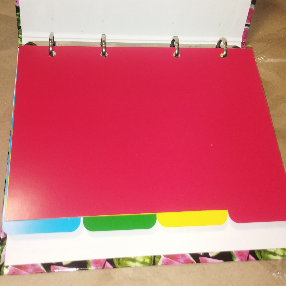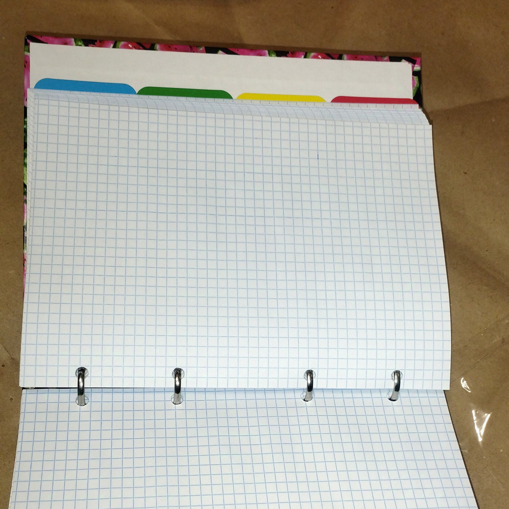 Соответствует описанию. 120 листов, клетка, яркая обложка и цветные картонные разделители.