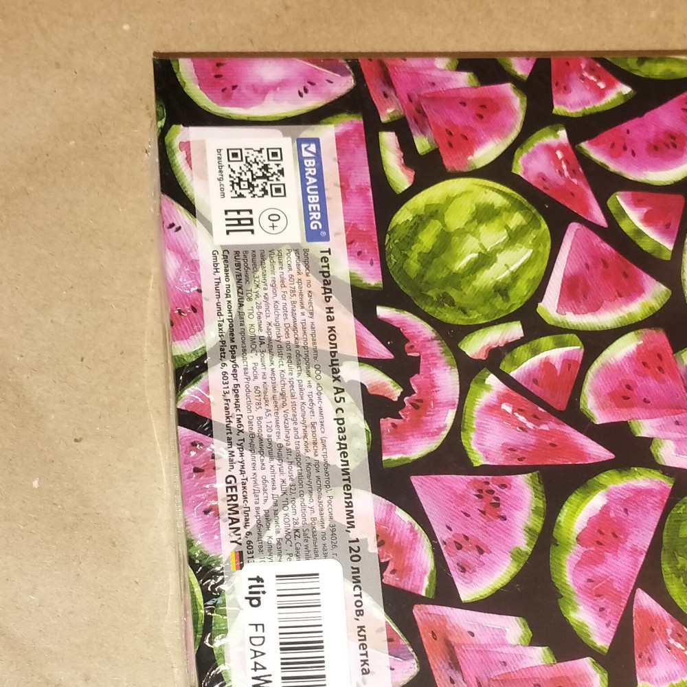 Яркий, качественный!Вкусно смотрятся арбузики . Взяла на подарок)