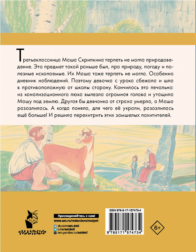 💳 Оплатить за товар можно при получении 🇰🇿 Есть бесплатная доставка по Казахстану 🎁 Копите бонусы с каждой покупки Серия: Любимые писатели — детям Третьеклассница Маша Скрипкина терпеть не могла природоведение. Это предмет такой раньше был, про природу, погоду и полезные ископаемые. Их Маша тоже терпеть не могла. Особенно дневник наблюдений. Поэтому девочка с урока сбежала и шла в противоположную от школы сторону. Кончилось это печально: из канализационного люка вылезла огромная голова и утащила Машу под землю. Другая бы девчонка от страха умерла, а Маша разозлилась. А когда поняла, для чего её украли, разозлилась ещё больше! И решила перехитрить этих замшелых похитителей. |
