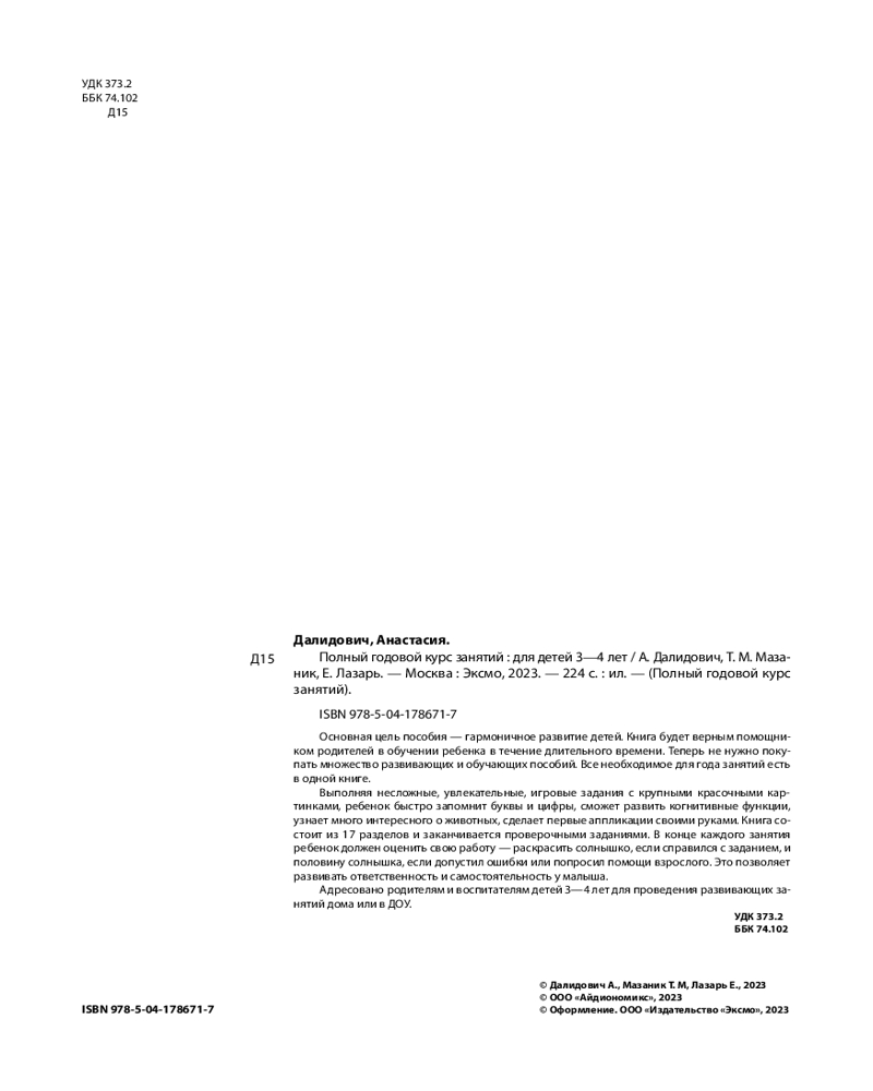 Полный годовой курс занятий: для детей 3-4 летТаисия Михайловна Мазаник, Анастасия Далидович, Елена Лазарь +67